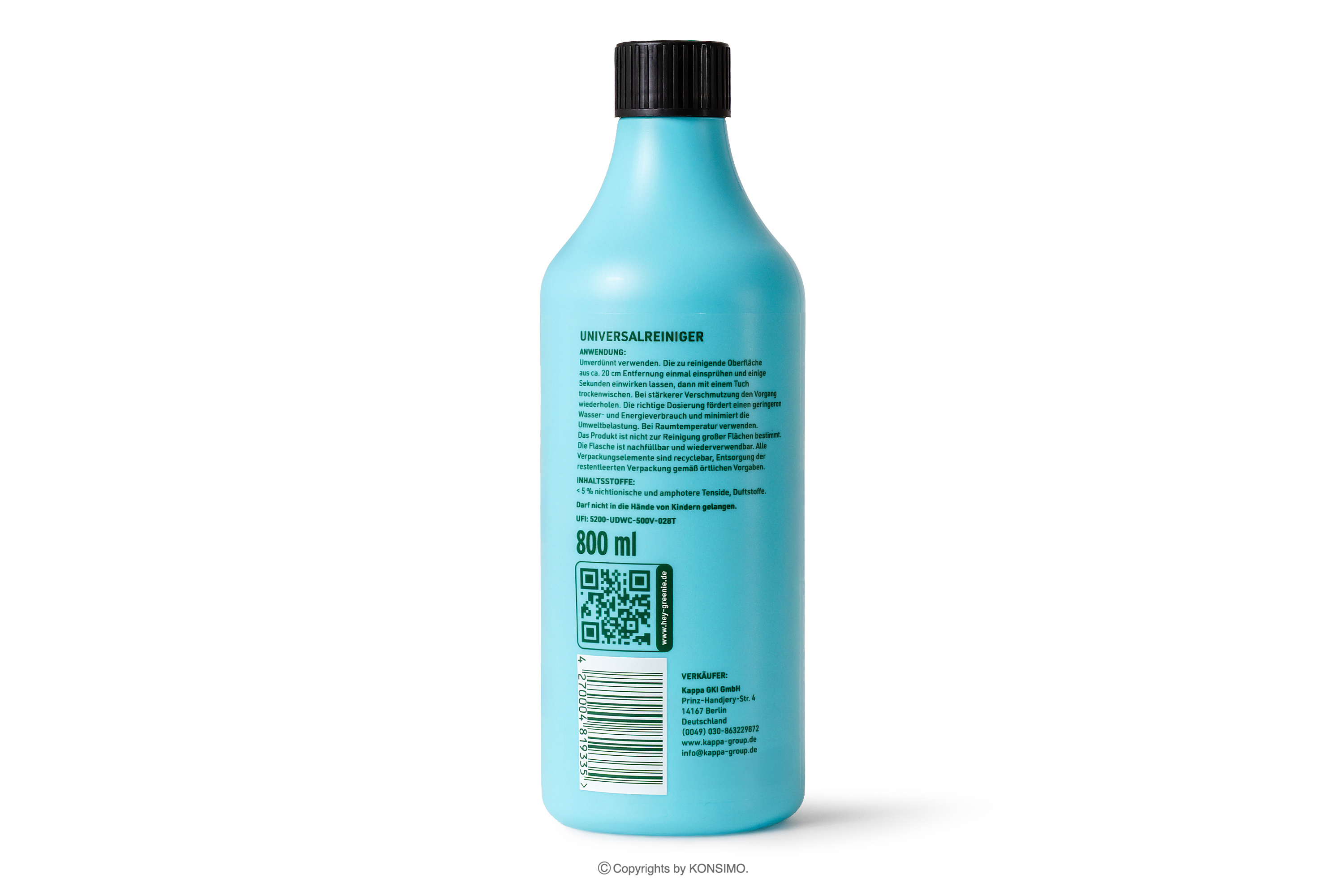 - vielseitiges Reinigungsmittel, das sich für verschiedene Oberflächen eignet – von Möbeln über Küche und Bad bis hin zu Glas und Edelstahl