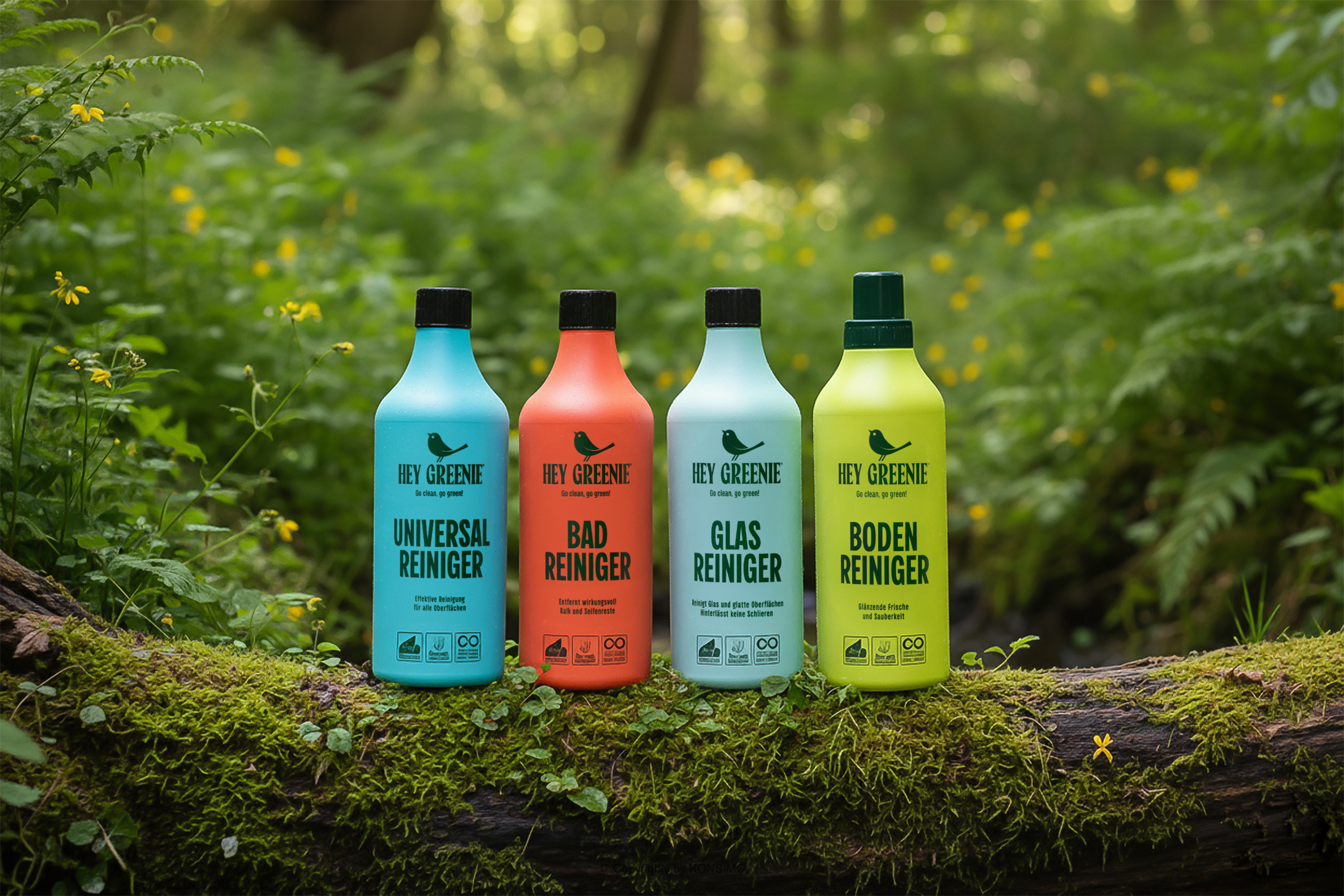 HEY GREENIE Veganes Reinigungsset – Reinigungsmittel für Fußböden, Badezimmer, Glas und Universalreiniger (4 Stück)