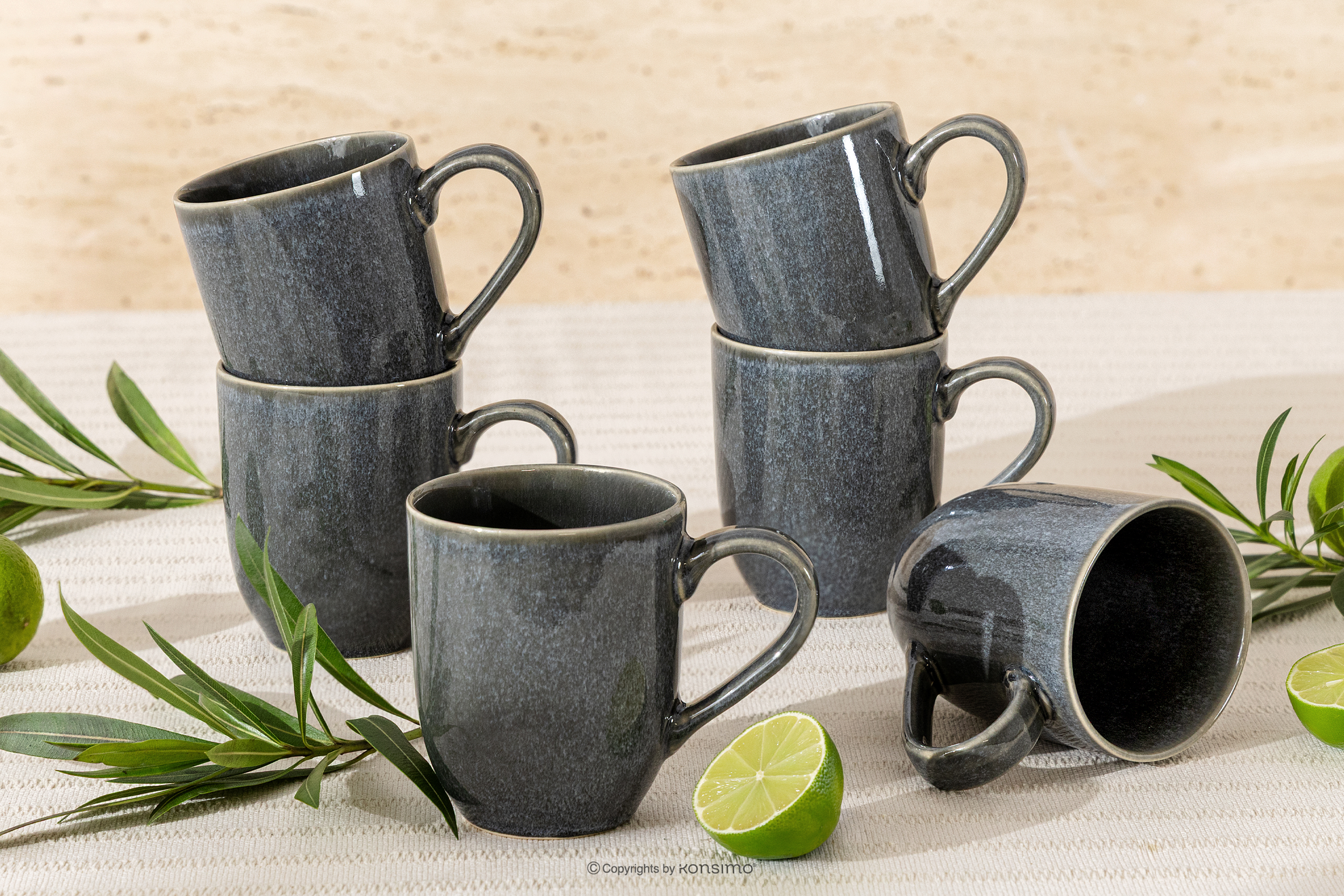 Keramikbecher im rustikalen Stil, blau/grau/beige, 6 Stück wurden mit Blick auf Langlebigkeit, Komfort und dauerhafte Schönheit entworfen. Jedes Element entsteht in einem Prozess, der traditionelles Handwerk mit modernen Verarbeitungstechniken verbindet, wodurch das Geschirr eine hohe Widerstandsfähigkeit im täglichen Gebrauch aufweist. Die Keramik ist robust und eignet sich daher sowohl für den eleganten Tisch als auch für die täglichen Familienmahlzeiten.