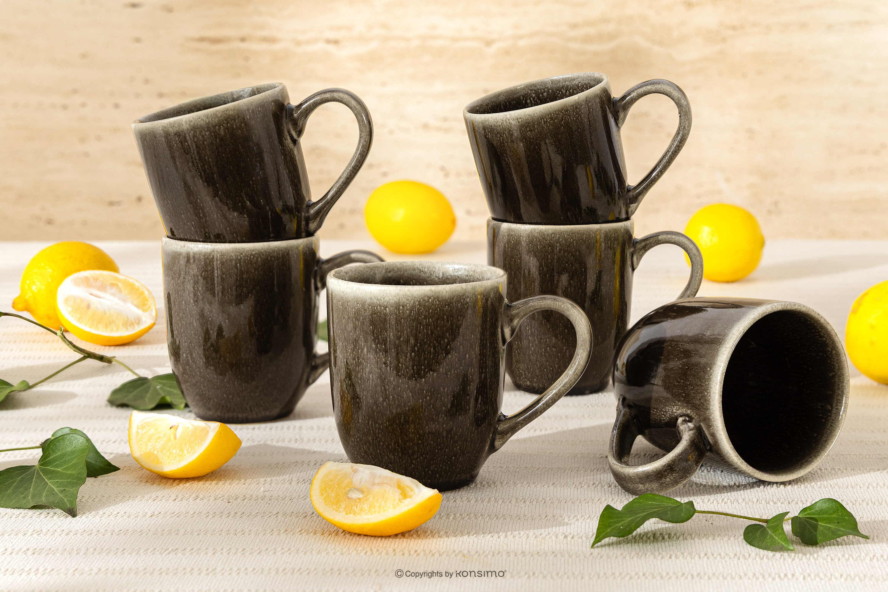 Keramikbecher im rustikalen Stil, braun/grau/beige, 6 Stück wurden mit Blick auf Langlebigkeit, Komfort und dauerhafte Schönheit entworfen. Jedes Element entsteht in einem Prozess, der traditionelles Handwerk mit modernen Verarbeitungstechniken verbindet, wodurch das Geschirr eine hohe Widerstandsfähigkeit im täglichen Gebrauch aufweist. Die Keramik ist robust und eignet sich daher sowohl für den eleganten Tisch als auch für die täglichen Familienmahlzeiten.