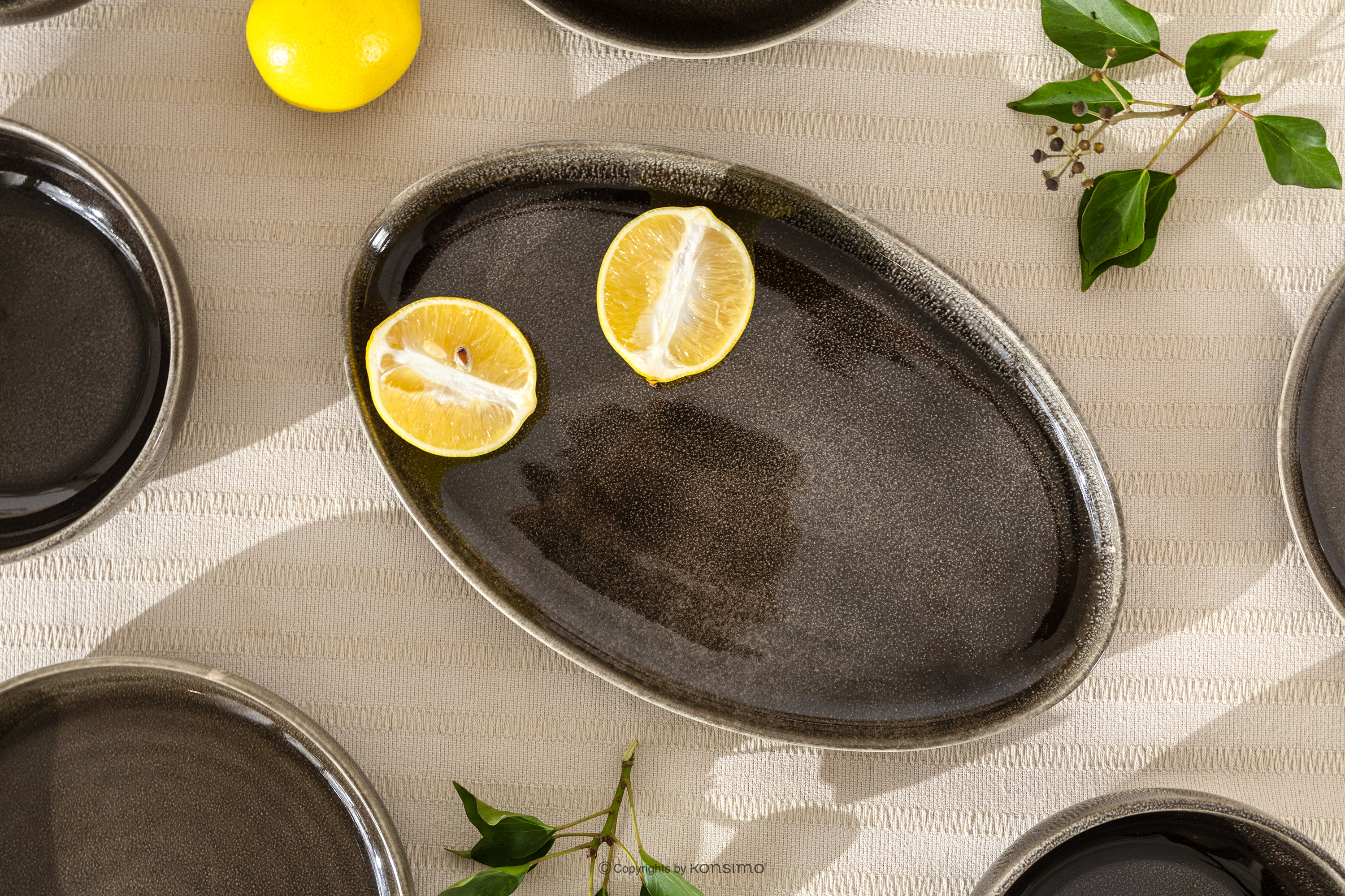 EDA Mehr aus der Kollektion Servierteller-Set (2 Stück) aus Keramik im rustikalen Stil, braun/grau/beige, 6 Stück- Farbe braun/grau/beige