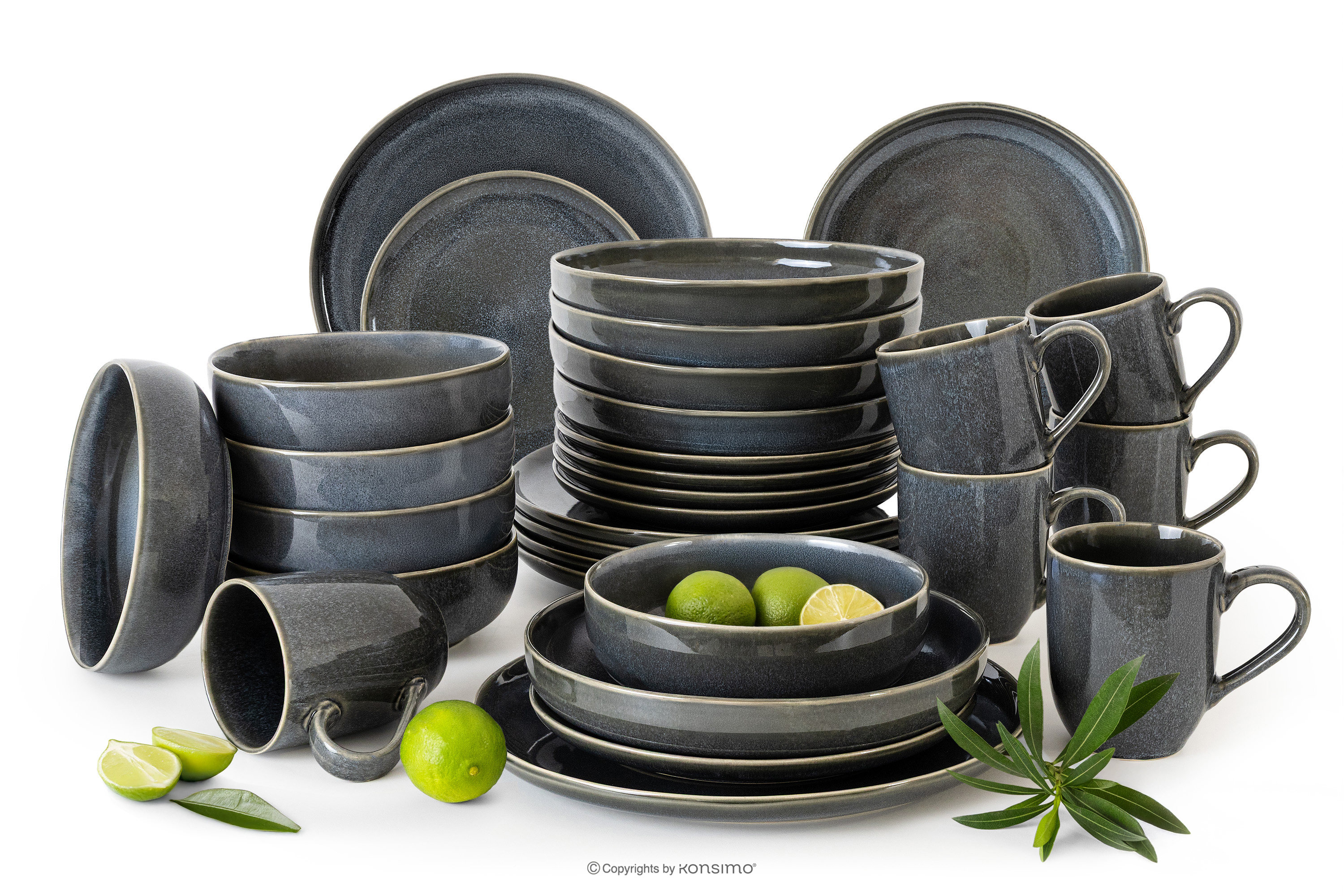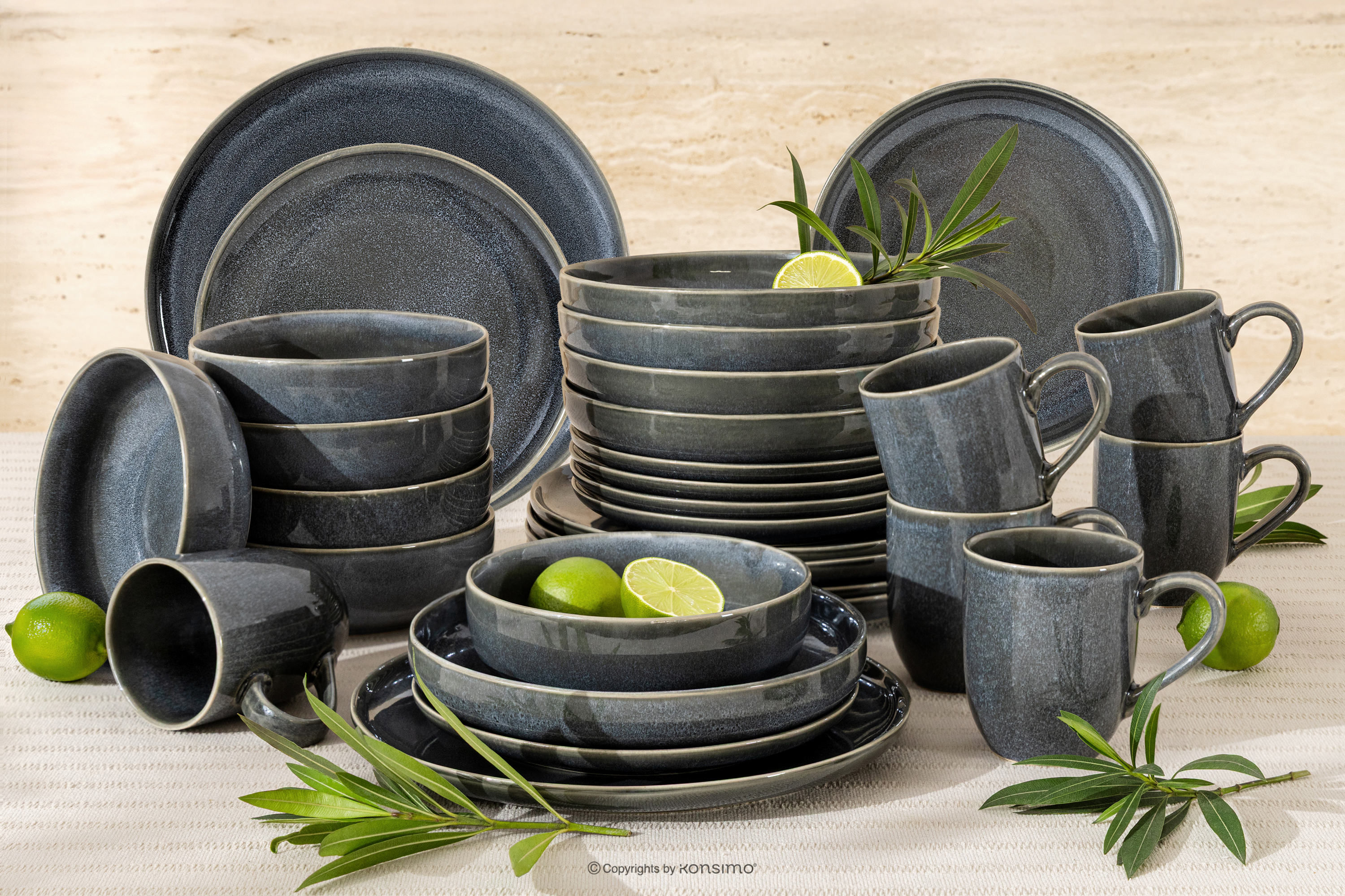 EDA Geschirrset für 6 Personen (30 tlg) aus Keramik im rustikalen Stil, blau/grau/beige