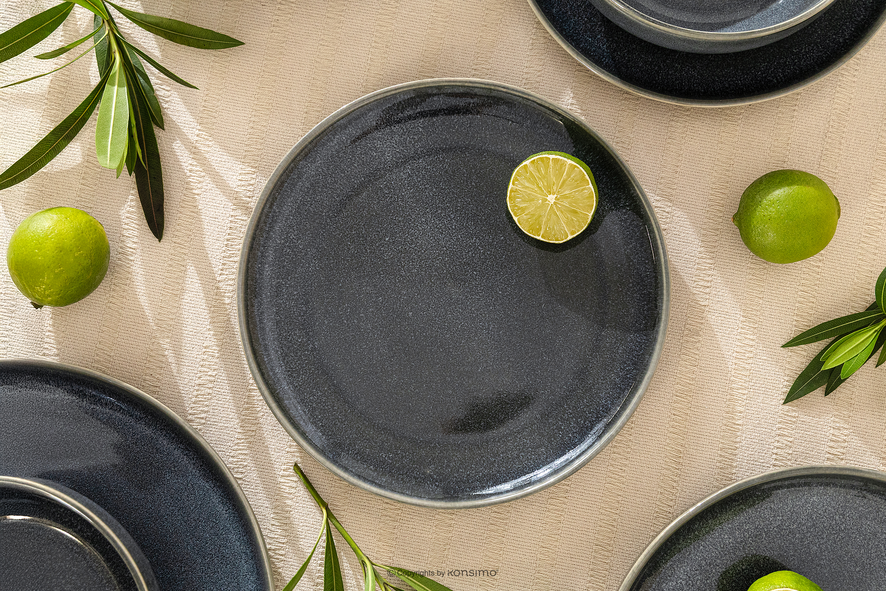 Geschirrset für 6 Personen (30 tlg) aus Keramik im rustikalen Stil, blau/grau/beige wurden mit Blick auf Langlebigkeit, Komfort und dauerhafte Schönheit entworfen. Jedes Element entsteht in einem Prozess, der traditionelles Handwerk mit modernen Verarbeitungstechniken verbindet, wodurch das Geschirr eine hohe Widerstandsfähigkeit im täglichen Gebrauch aufweist. Die Keramik ist robust und eignet sich daher sowohl für den eleganten Tisch als auch für die täglichen Familienmahlzeiten.