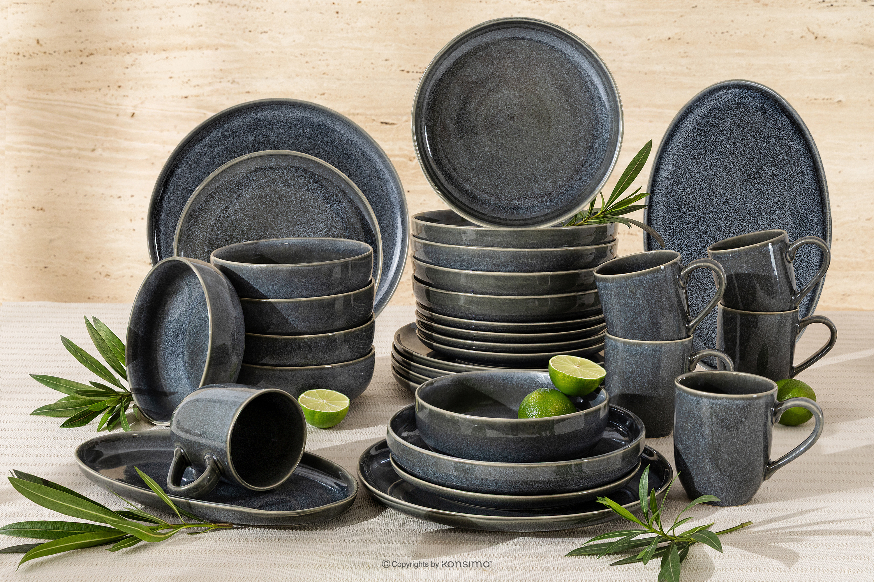 EDA Geschirrset für 6 Personen (32 tlg) aus Keramik im rustikalen Stil, blau/grau/beige