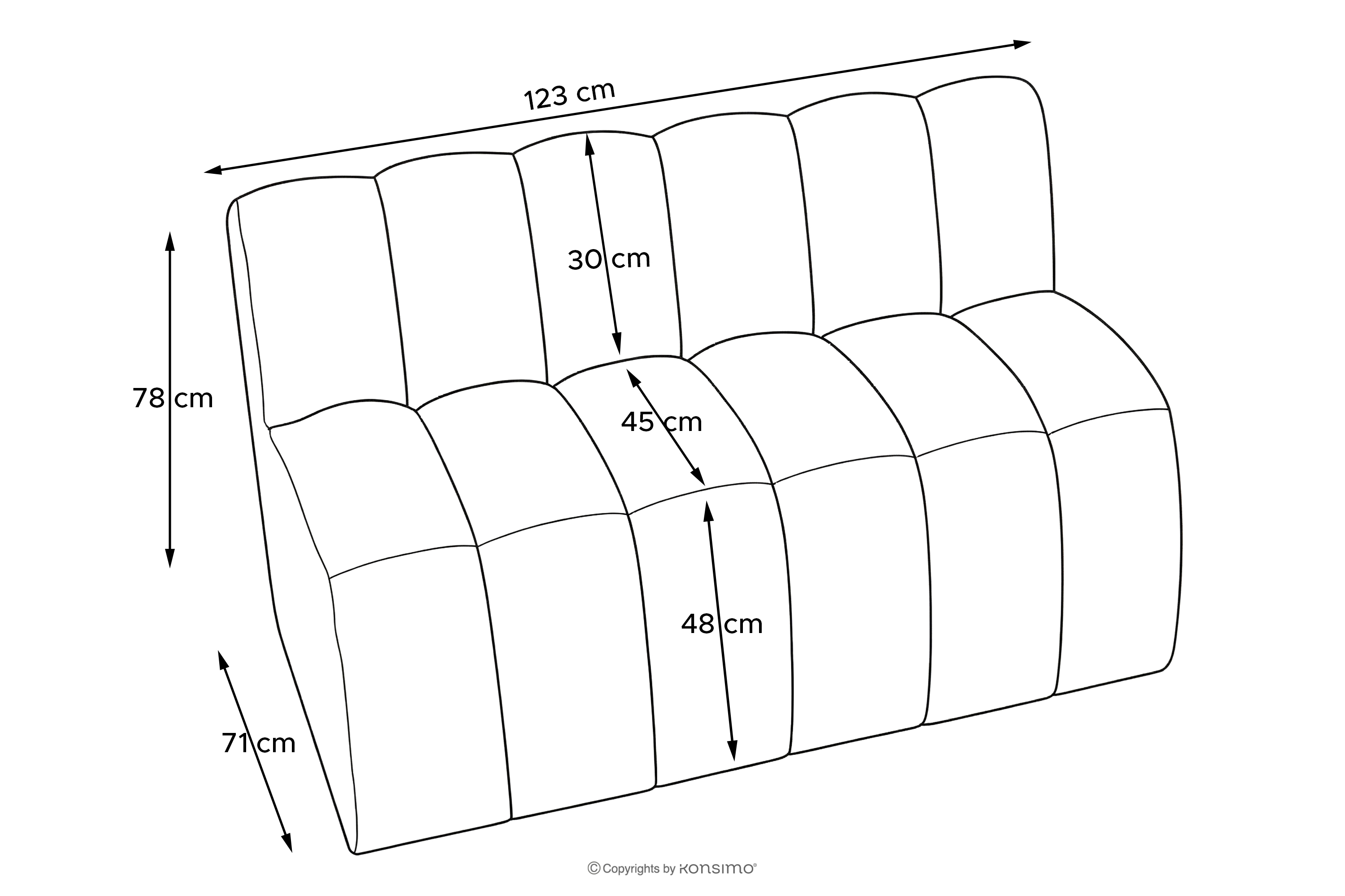 Die Konstruktion der Bank basiert auf einem niedrigen Profil, wodurch das Möbelstück besonders stabil ist und selbst bei voller Belastung durch mehrere Personen gleichzeitig nicht wackelt. Die deutliche Segmentierung von Sitzfläche und Rückenlehne verhindert ein übermäßiges Dehnen des Materials, sodass die Polsterung auch bei intensiver Nutzung über viele Jahre hinweg ihr ursprüngliches, gepflegtes Aussehen behält.