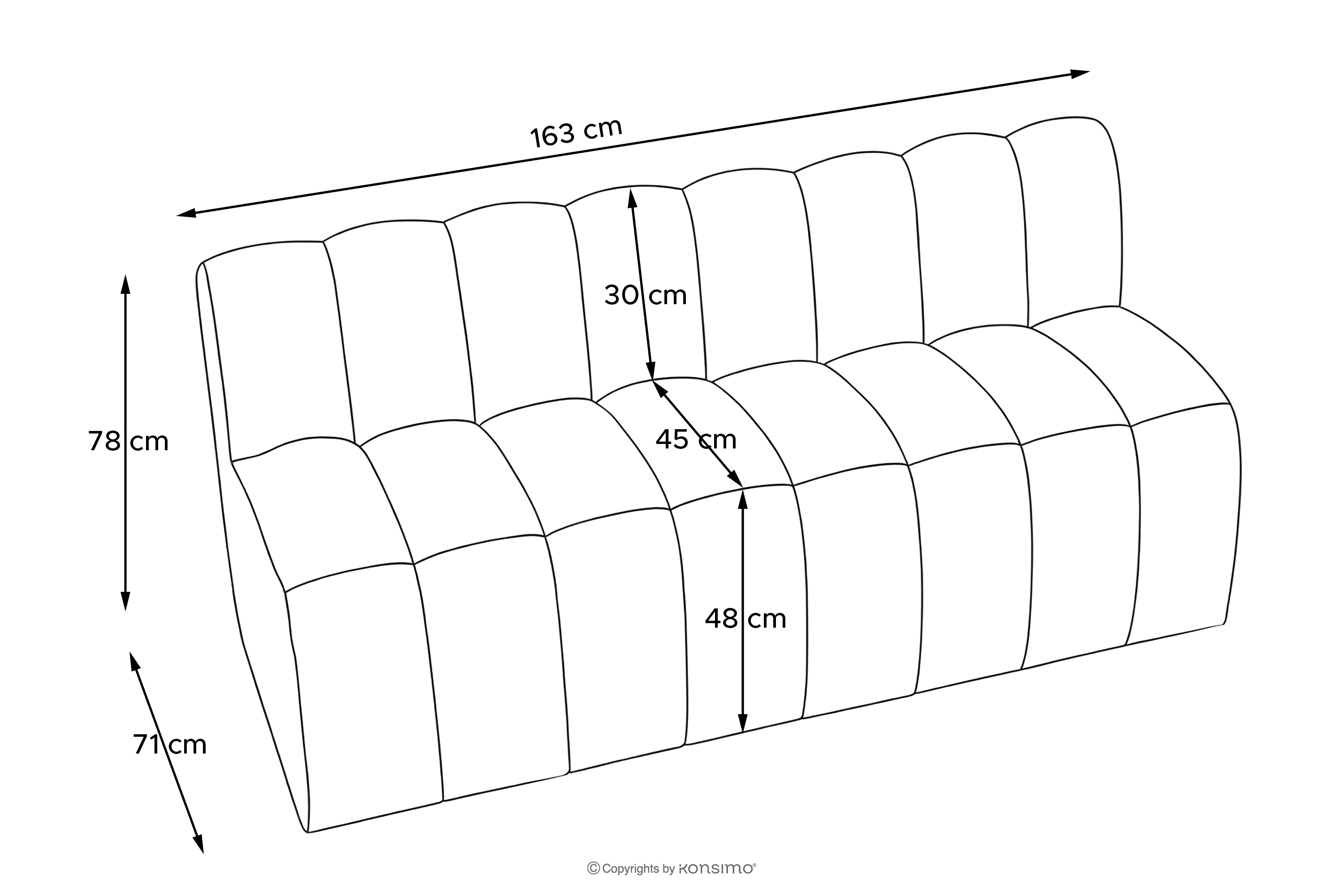 Die Konstruktion der Bank basiert auf einem niedrigen Profil, wodurch das Möbelstück besonders stabil ist und selbst bei voller Belastung durch mehrere Personen gleichzeitig nicht wackelt. Die deutliche Segmentierung von Sitzfläche und Rückenlehne verhindert ein übermäßiges Dehnen des Materials, sodass die Polsterung auch bei intensiver Nutzung über viele Jahre hinweg ihr ursprüngliches, gepflegtes Aussehen behält.