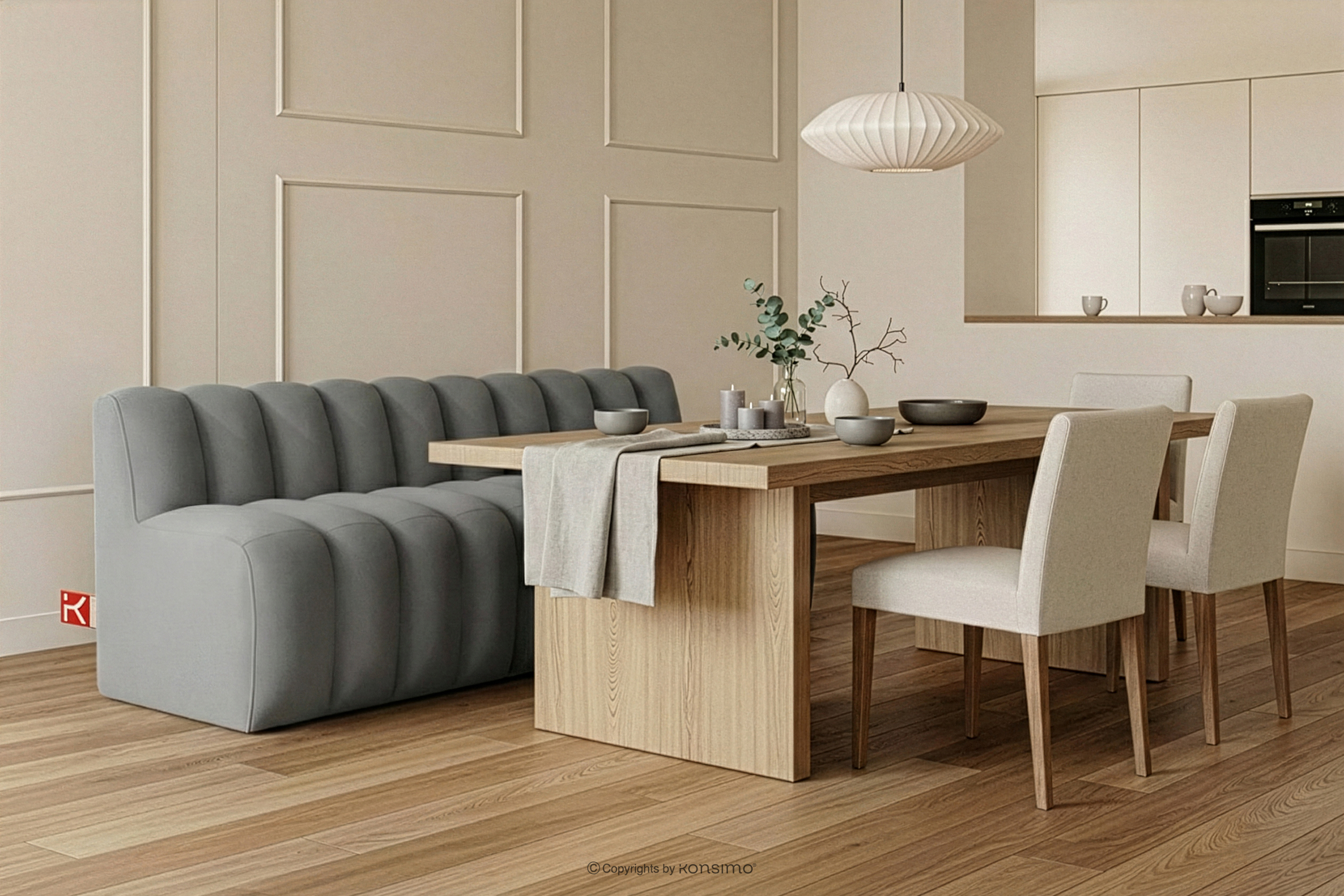 Gepolsterte Esszimmerbank 200 cm hellgrauer Velours ist die Lösung für alle, die einen goldenen Mittelweg zwischen Stil und purer Funktionalität suchen. Anstelle von traditionellen Stühlen, die oft für visuelle Unruhe sorgen, bieten wir eine kompakte, modulare Form mit weichen Kanten. Das Fehlen scharfer Ecken ist nicht nur eine Frage der Ästhetik, sondern vor allem der Sicherheit – insbesondere in engen Durchgängen, Fluren oder Häusern, in denen Kinder spielen.