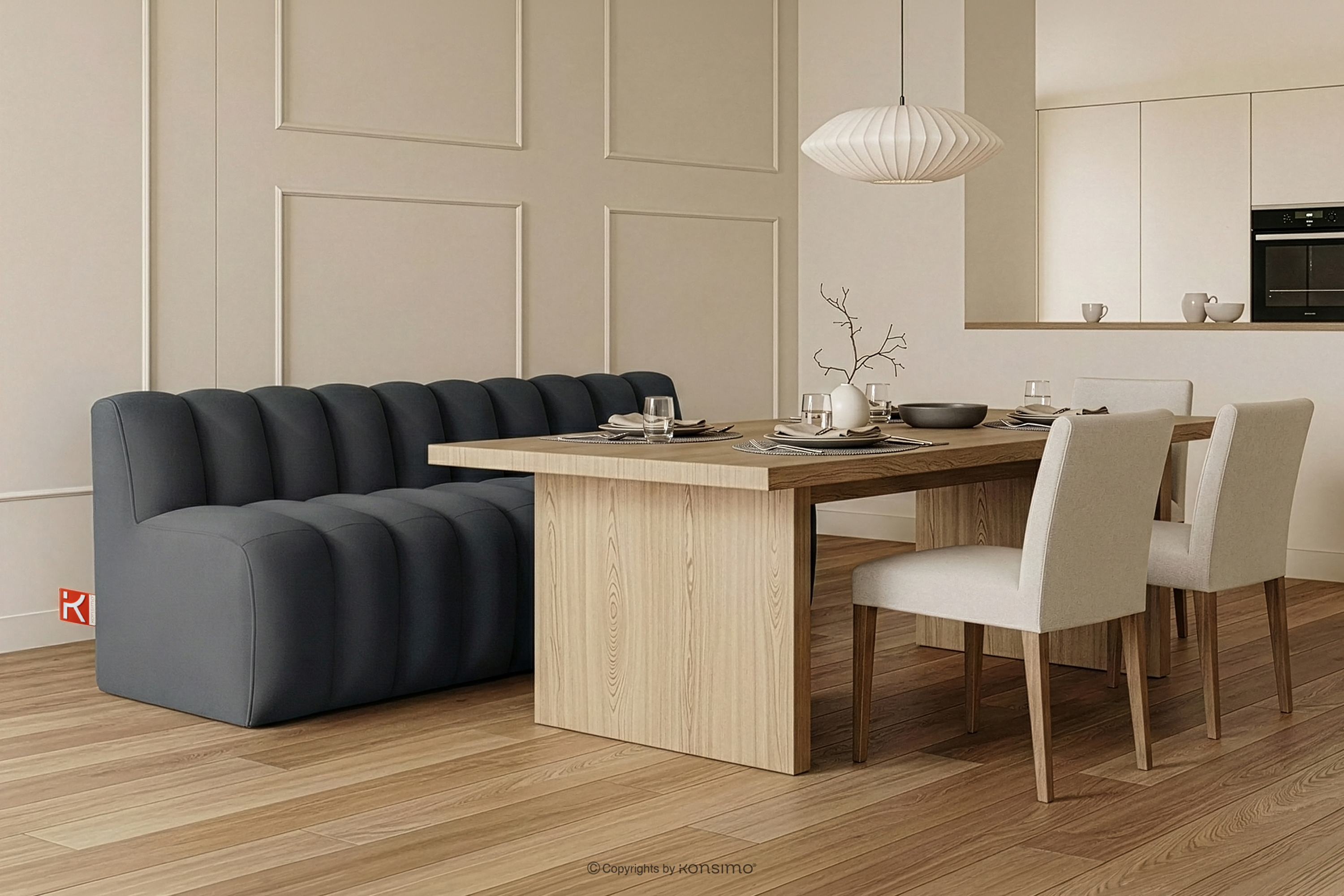 Gepolsterte Esszimmerbank 200 cm dunkelgrauer Velours ist die Lösung für alle, die einen goldenen Mittelweg zwischen Stil und purer Funktionalität suchen. Anstelle von traditionellen Stühlen, die oft für visuelle Unruhe sorgen, bieten wir eine kompakte, modulare Form mit weichen Kanten. Das Fehlen scharfer Ecken ist nicht nur eine Frage der Ästhetik, sondern vor allem der Sicherheit – insbesondere in engen Durchgängen, Fluren oder Häusern, in denen Kinder spielen.