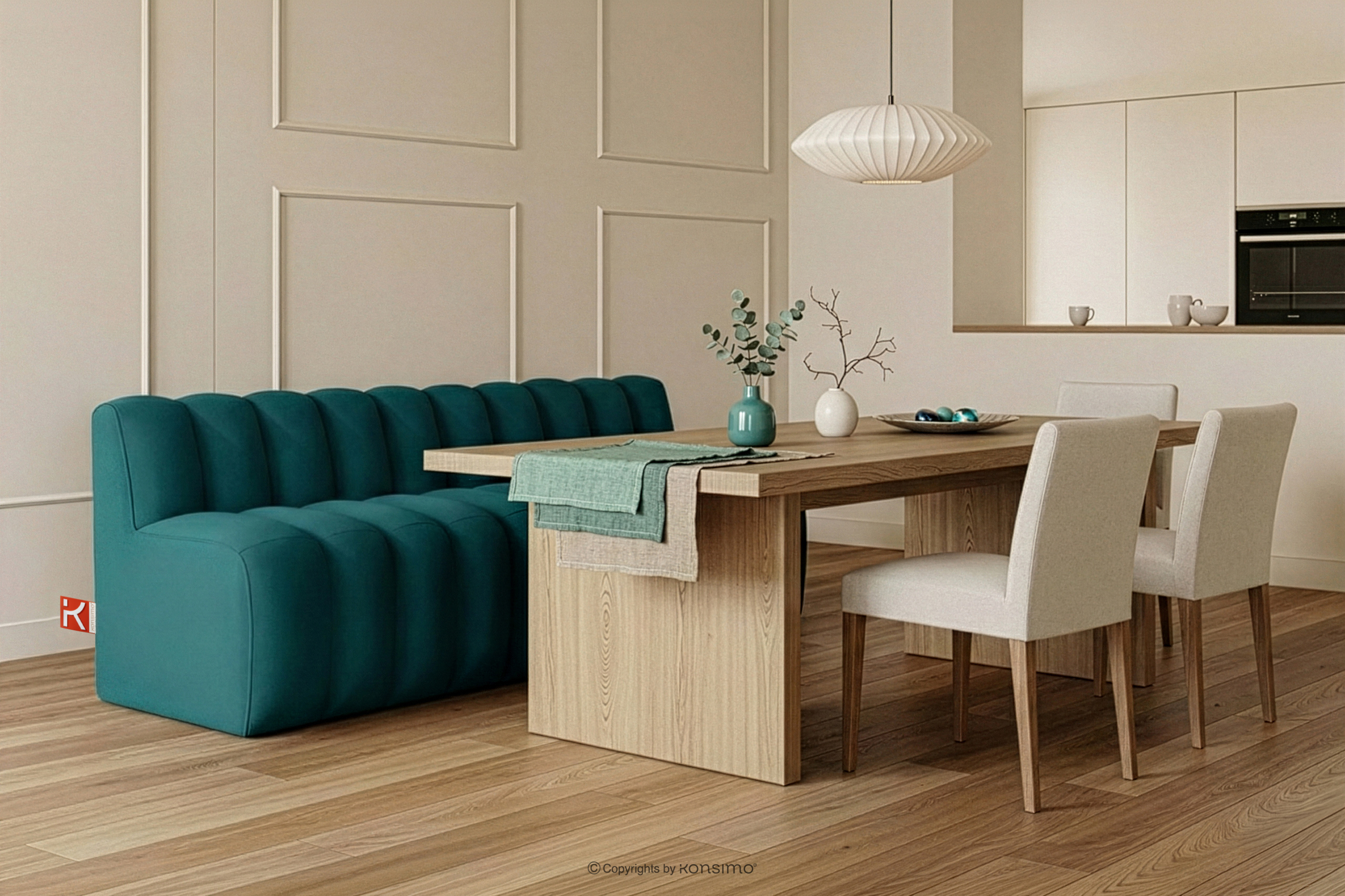 Gepolsterte Esszimmerbank 200 cm marineblauer Velours ist die Lösung für alle, die einen goldenen Mittelweg zwischen Stil und purer Funktionalität suchen. Anstelle von traditionellen Stühlen, die oft für visuelle Unruhe sorgen, bieten wir eine kompakte, modulare Form mit weichen Kanten. Das Fehlen scharfer Ecken ist nicht nur eine Frage der Ästhetik, sondern vor allem der Sicherheit – insbesondere in engen Durchgängen, Fluren oder Häusern, in denen Kinder spielen.