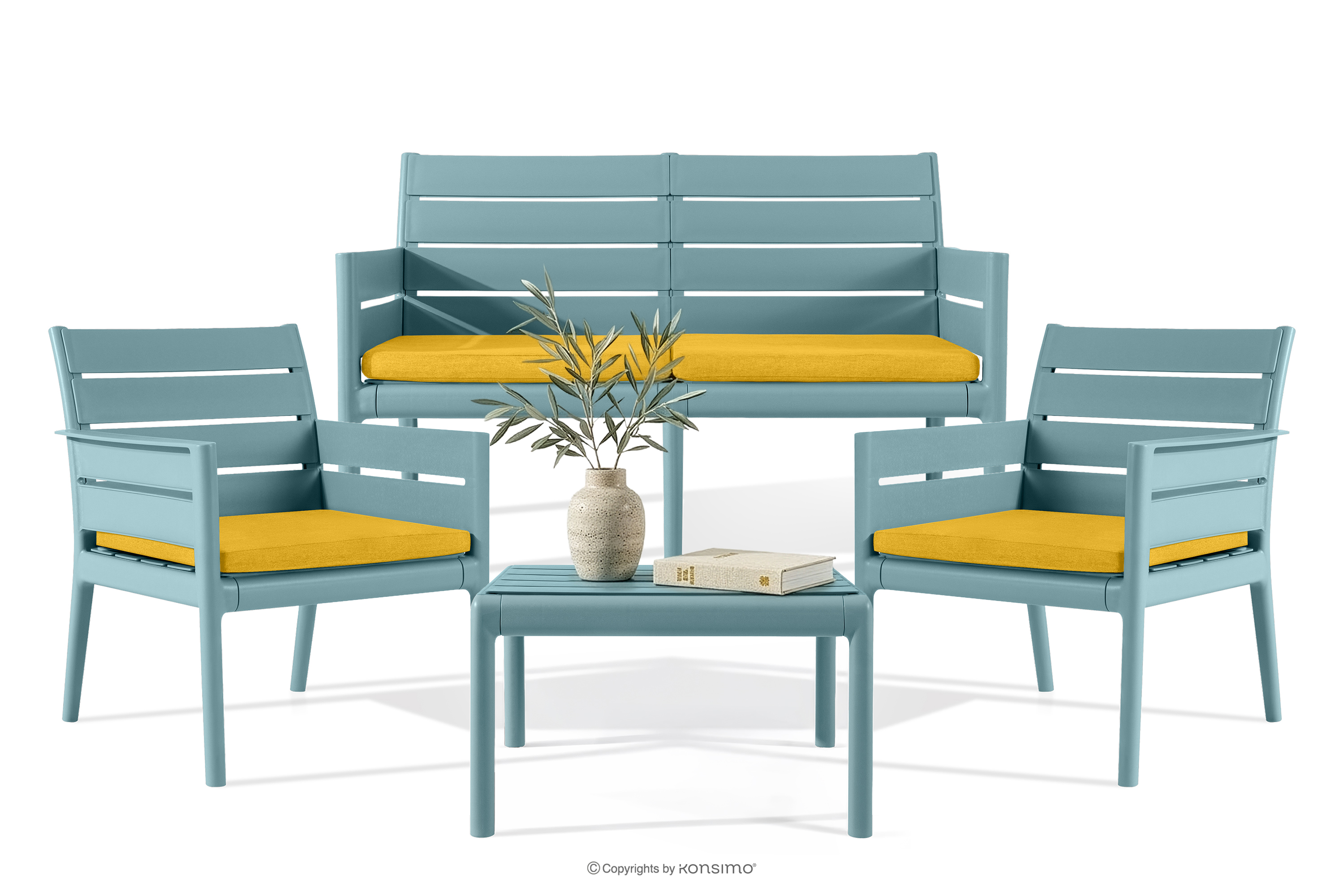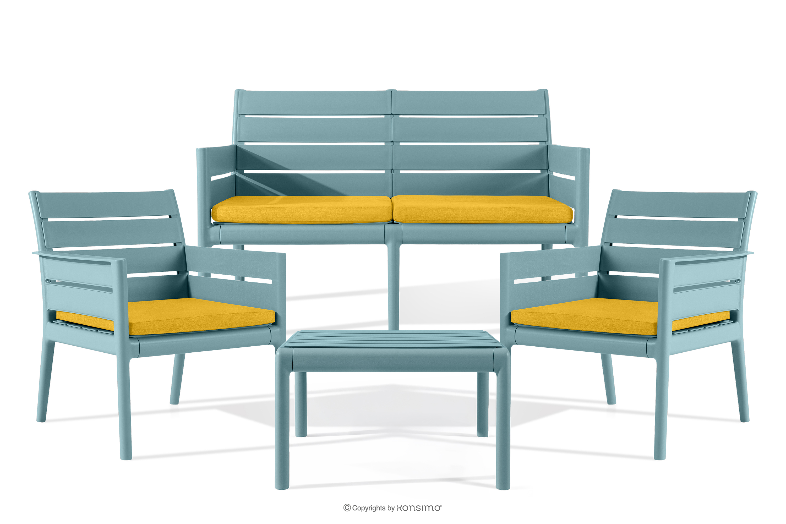 MITTU Mehr aus der Kollektion Terrassenmöbel-Set aus Polypropylen Sofa, 2x Stuhl, Couchtisch mint/gelb- Farbe mint/gelb