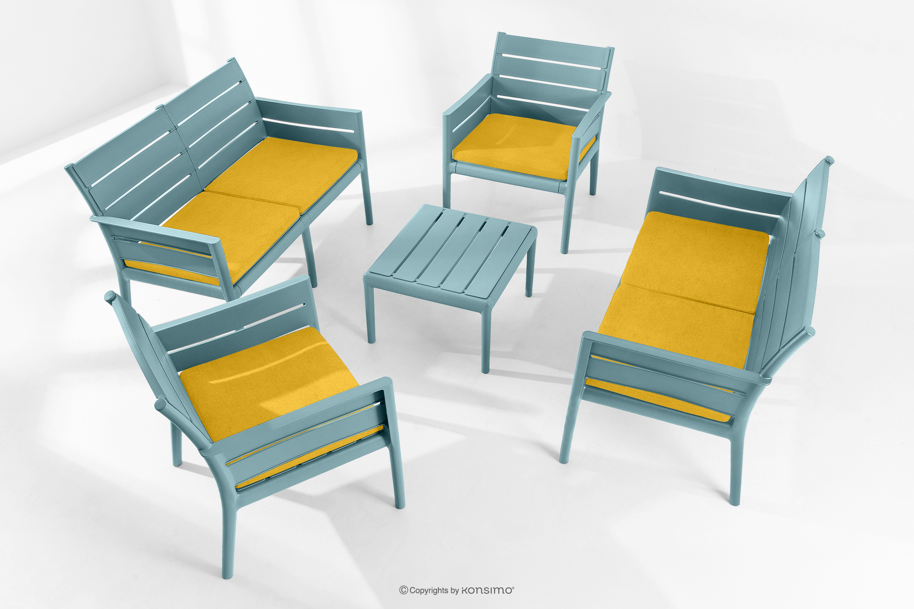 MITTU Mehr aus der Kollektion Terrassenmöbel-Set aus Polypropylen 2x Sofa, 2x Stuhl, Couchtisch in Mint/Gelb- Farbe mint/gelb