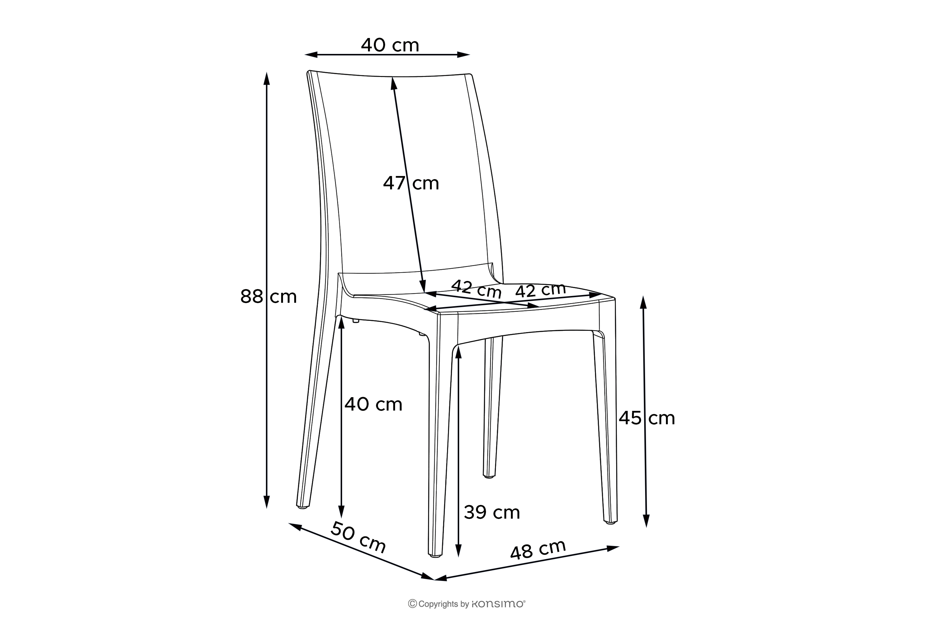 - Abmessungen der Sitzfläche (cm): 42x45x42