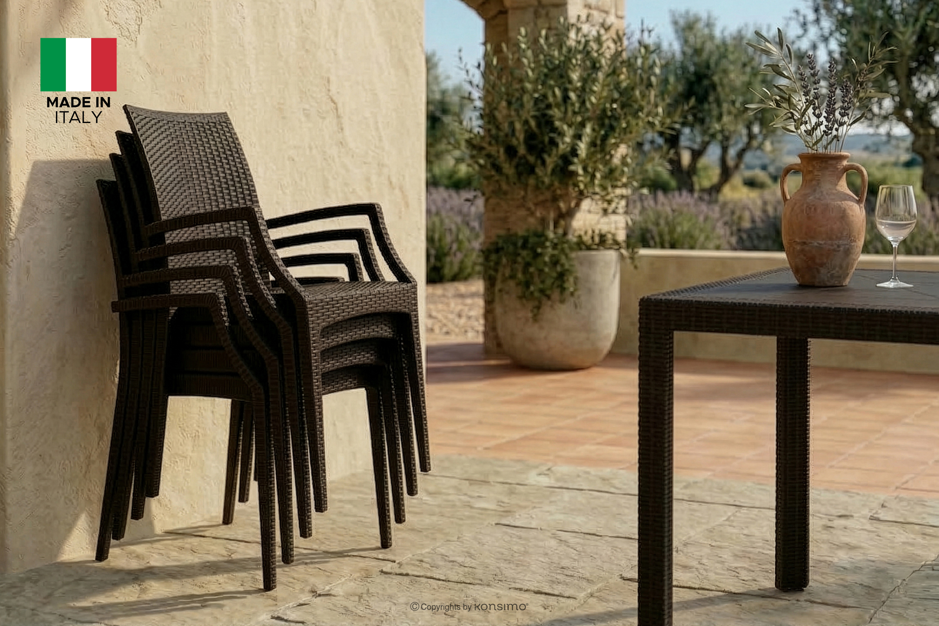 ETULI Moderner Gartenstuhl mit Armlehnen aus Polypropylen 4 tlg. braun