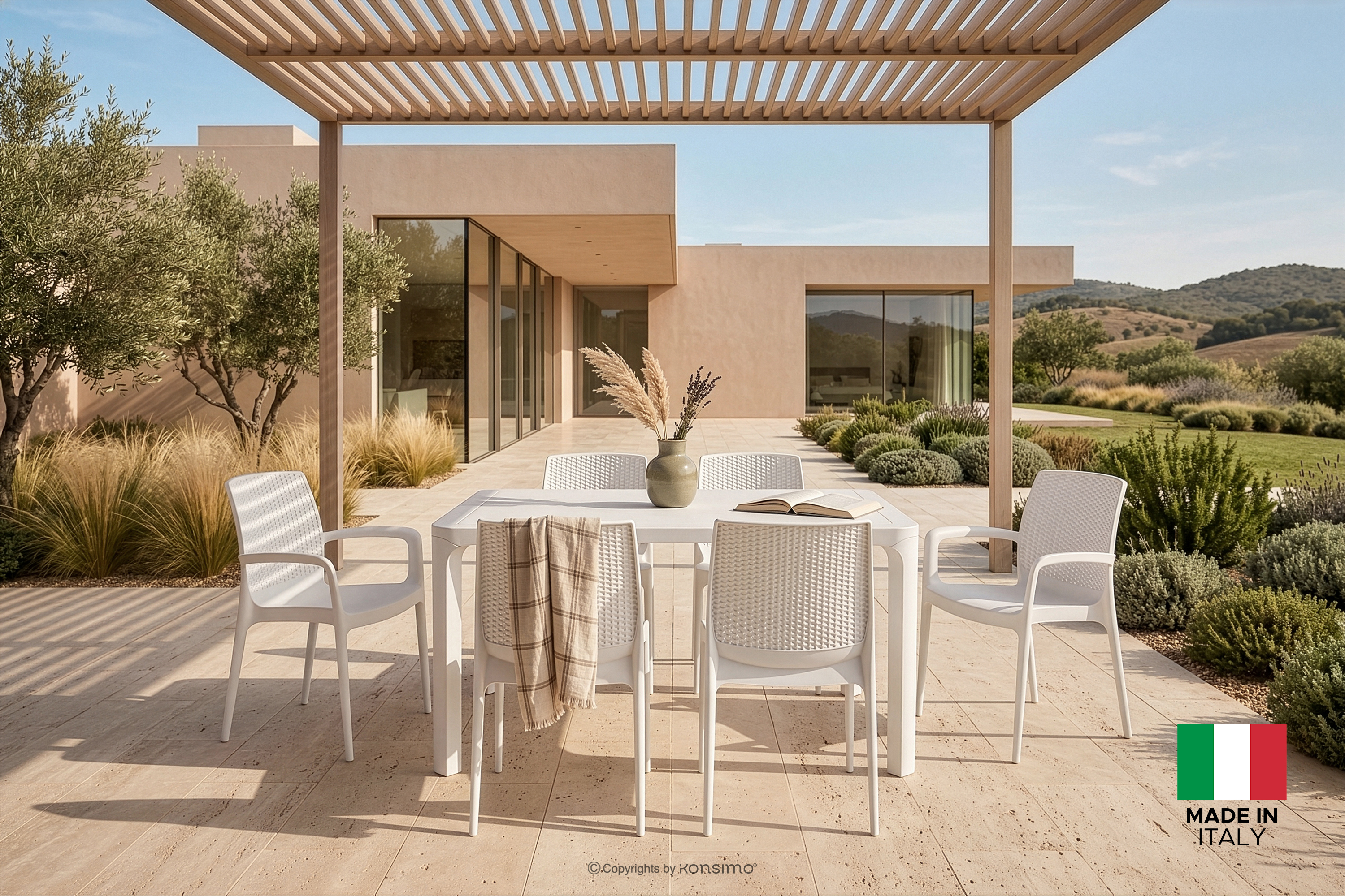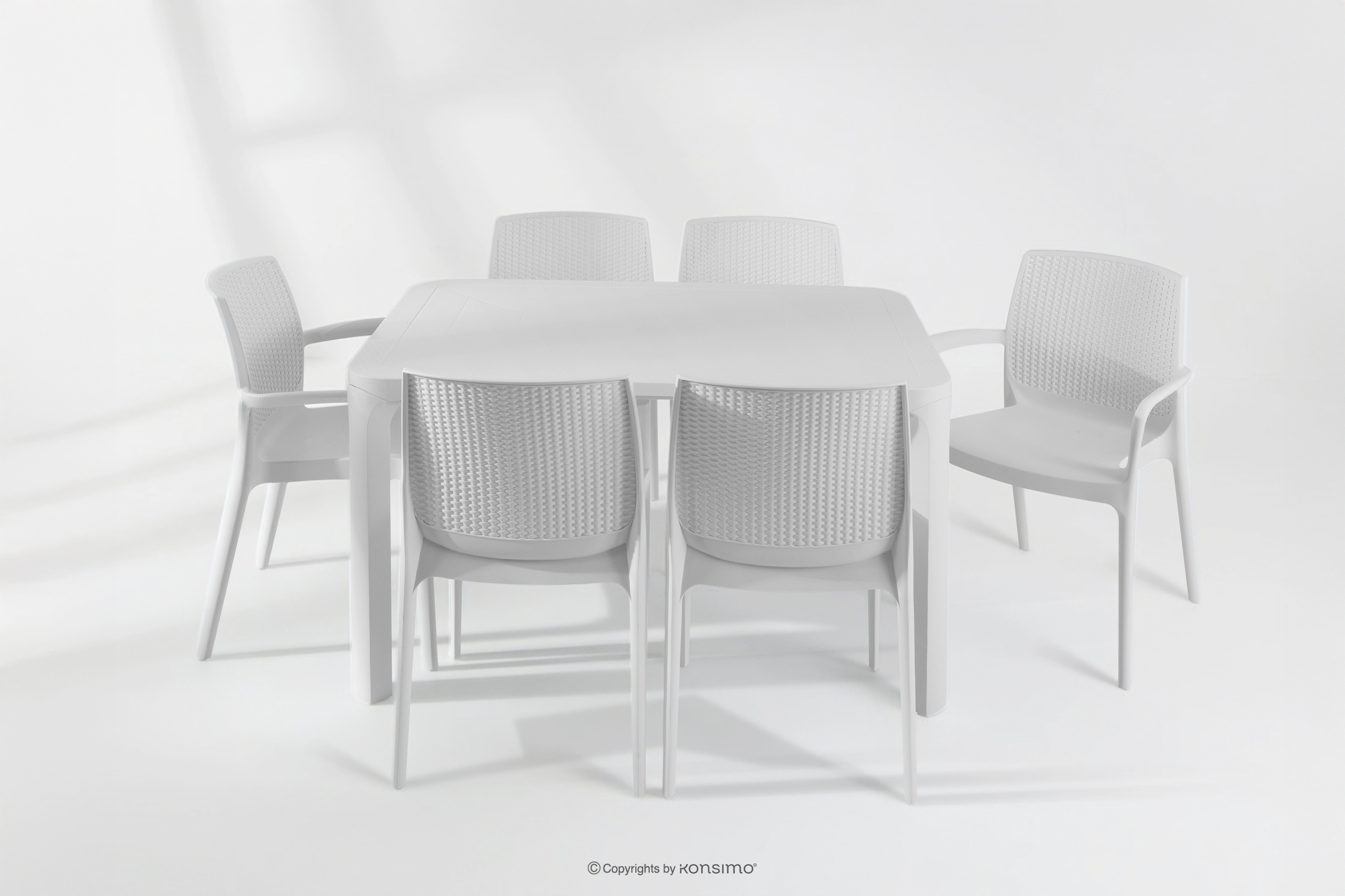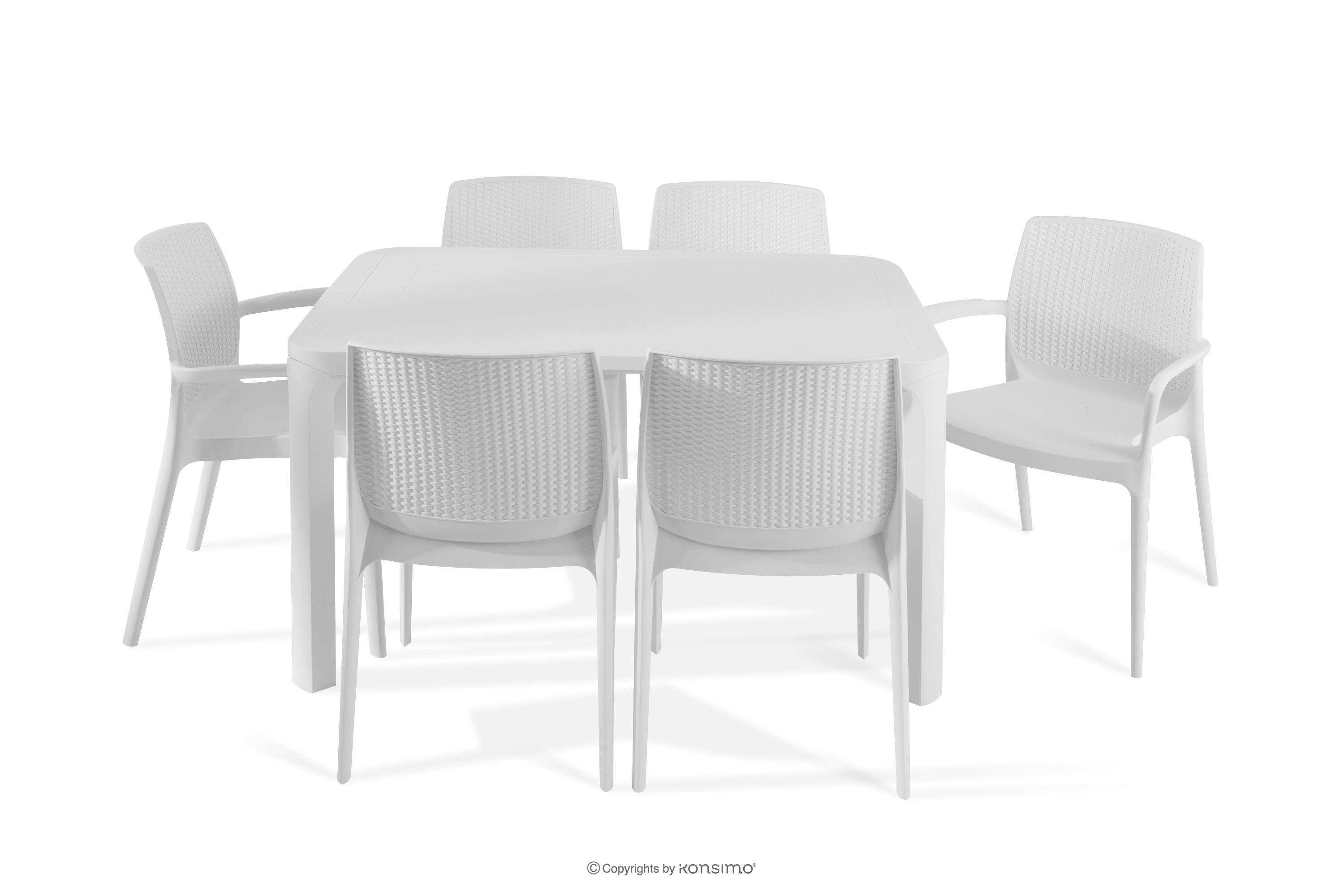 für das Produkt Gartentisch mit 6 Stühlen aus weißem Polypropylen