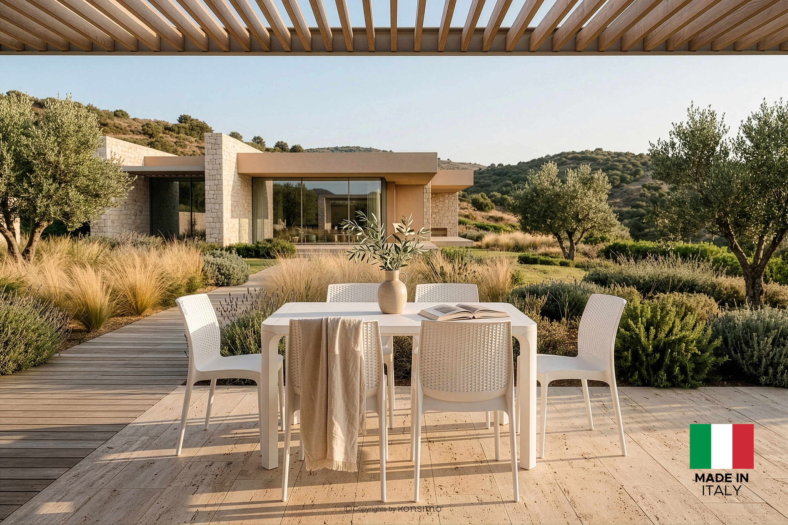LEOPSI Mehr aus der Kollektion Gartentisch mit 6 Stühlen aus Polypropylen weiß- Farbe weiß