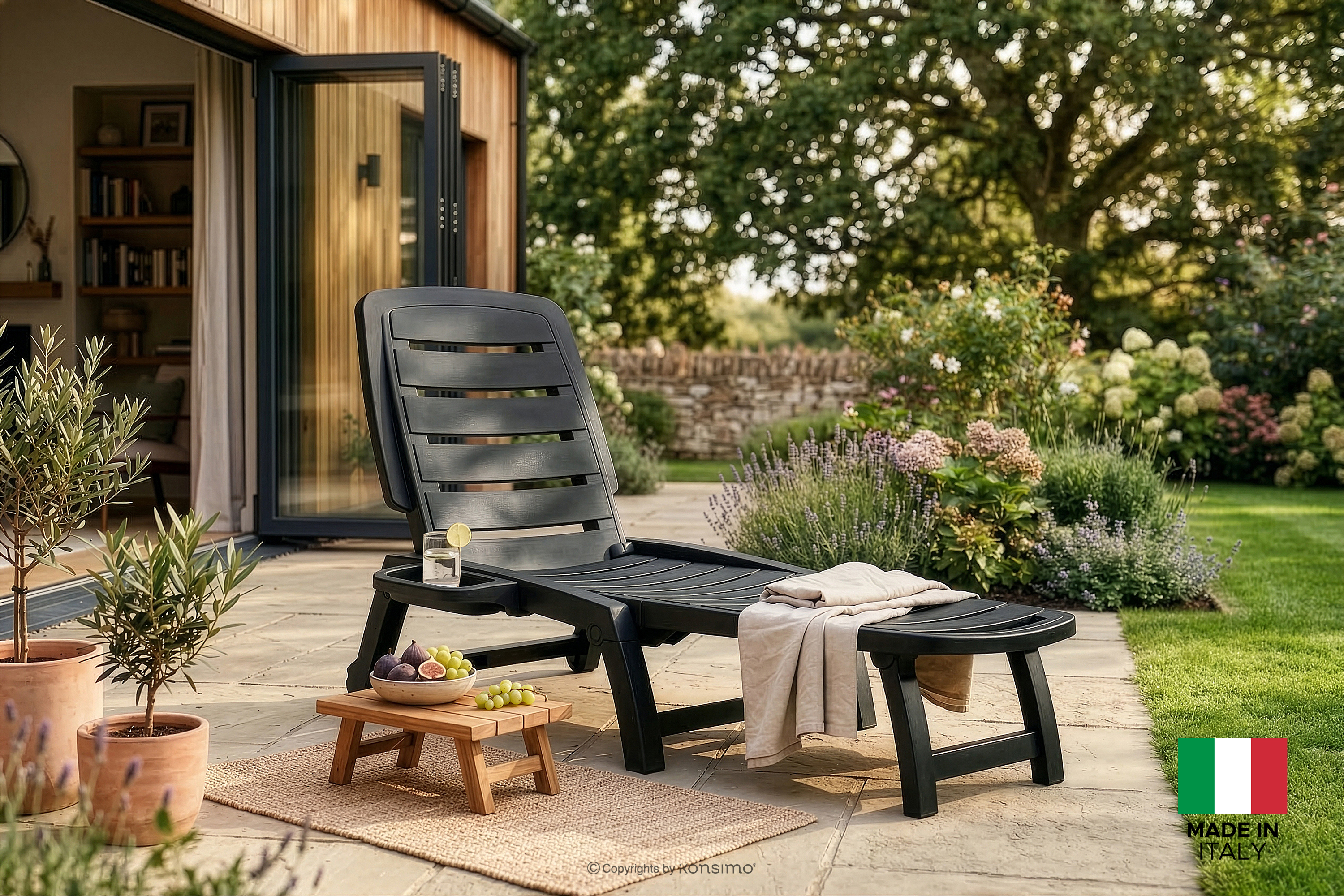 BURRA Mehr aus der Kollektion Verstellbare Gartenliege mit Getränkehalter 2 tlg. anthrazit- Farbe anthrazit