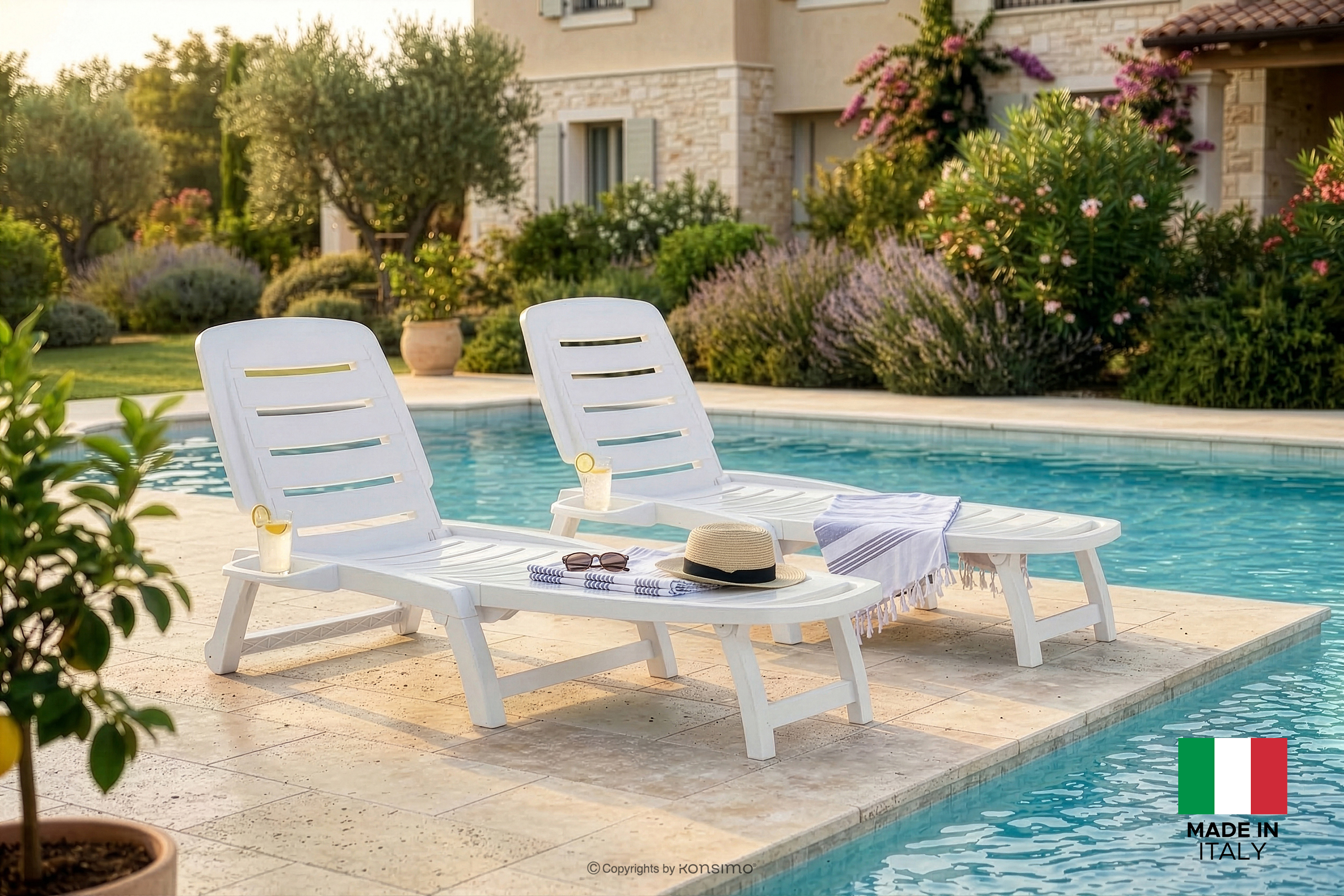 für das Produkt Verstellbare Gartenliege mit Getränkehalter 2 tlg. weiß