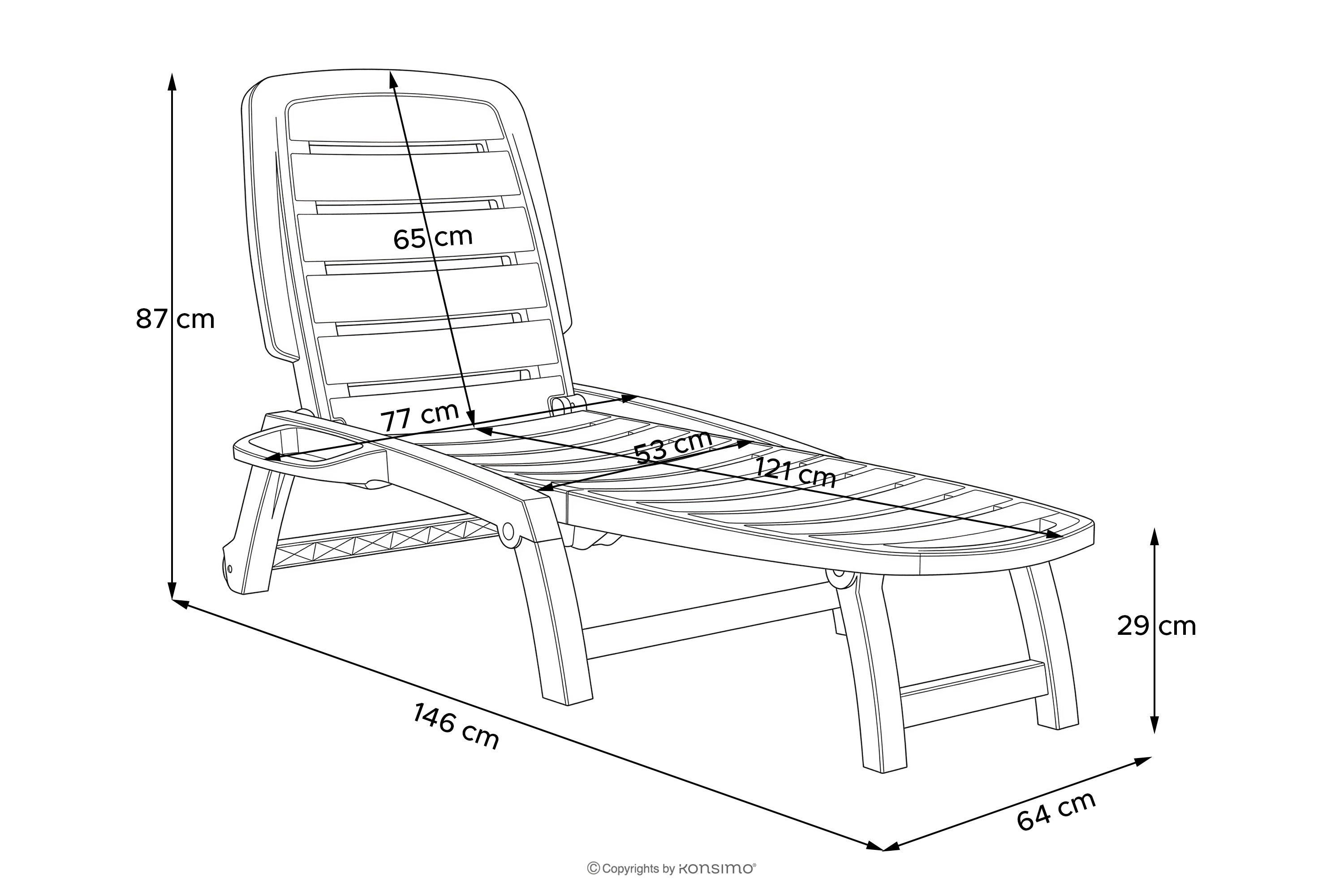 - Zusätzliche Informationen: abnehmbarer Getränke-Einlegeboden, Einfache Aufbewahrung, da sich der Liegestuhl auf kompakte Maße zusammenklappen lässt, für den Innen- und Außenbereich, Rollen, die das Transportieren der Liege erleichtern