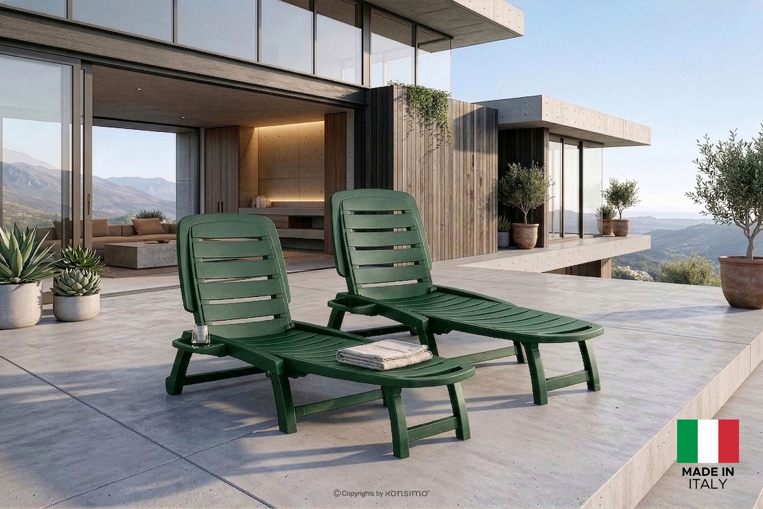 BURRA Mehr aus der Kollektion Verstellbare Gartenliege mit Getränkehalter 2 tlg. dunkelgrün- Farbe dunkelgrün