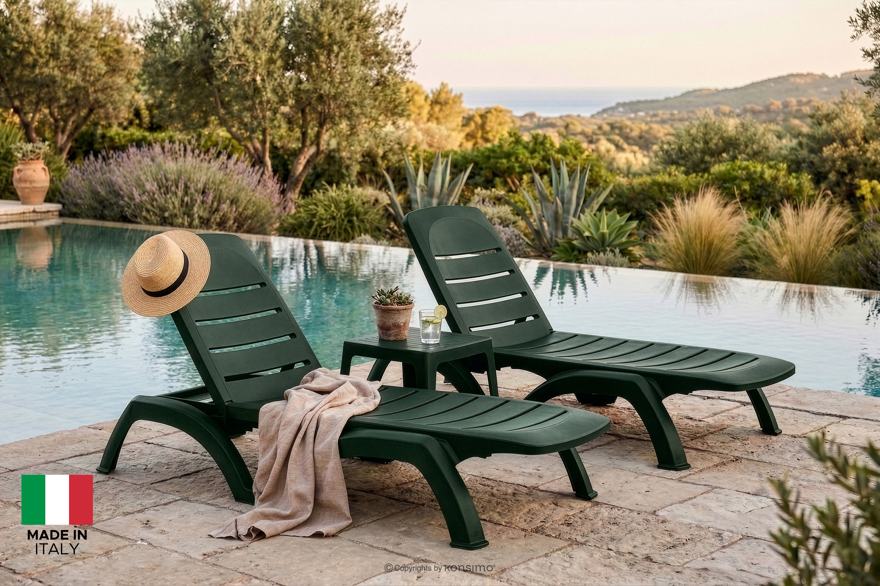 BATSI Hotel-Liegestuhl mit Stauraum und verstellbarer Rückenlehne dunkelgrün