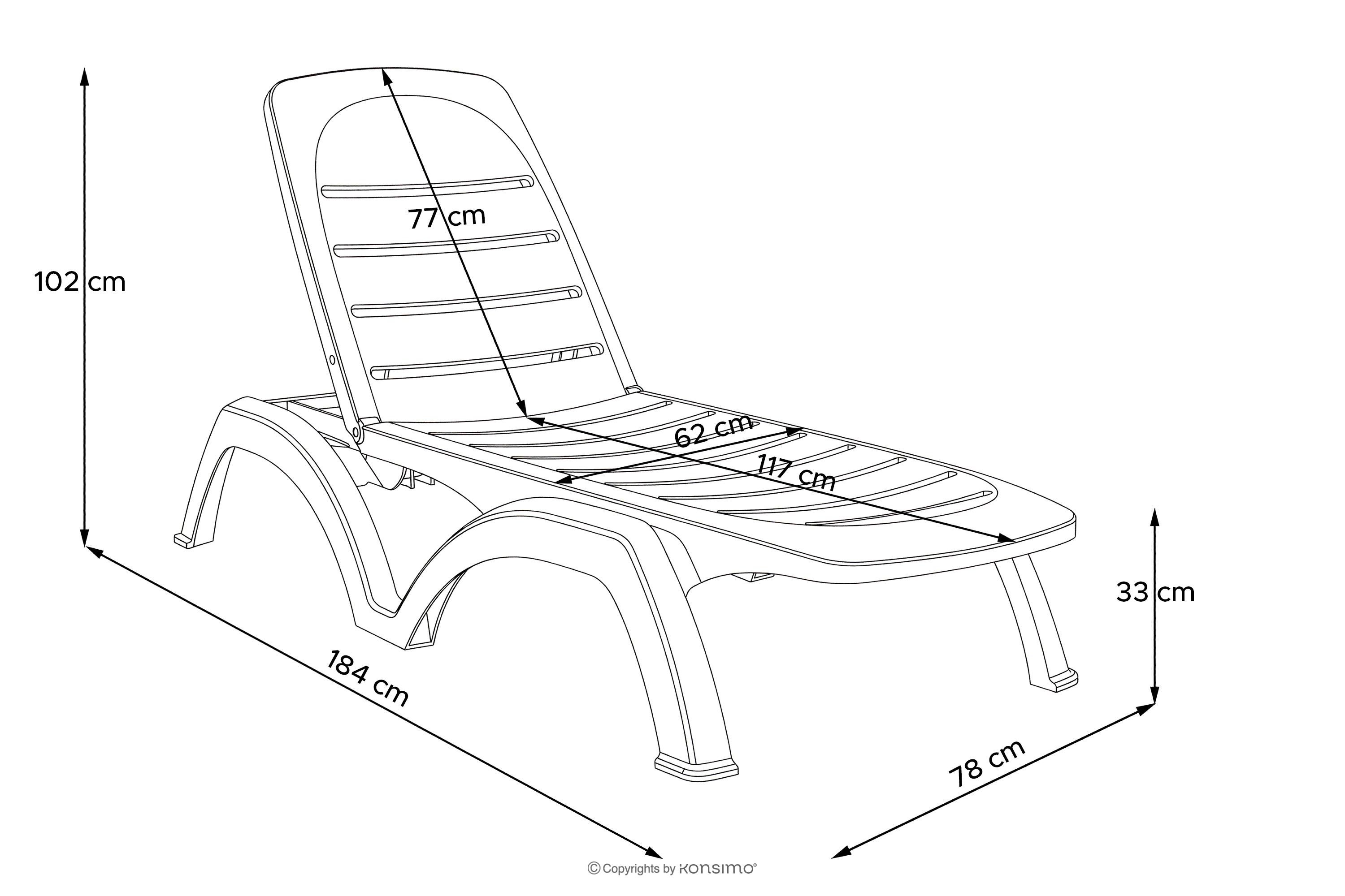 - Abmessungen der Sitzfläche (cm): 62x33x117