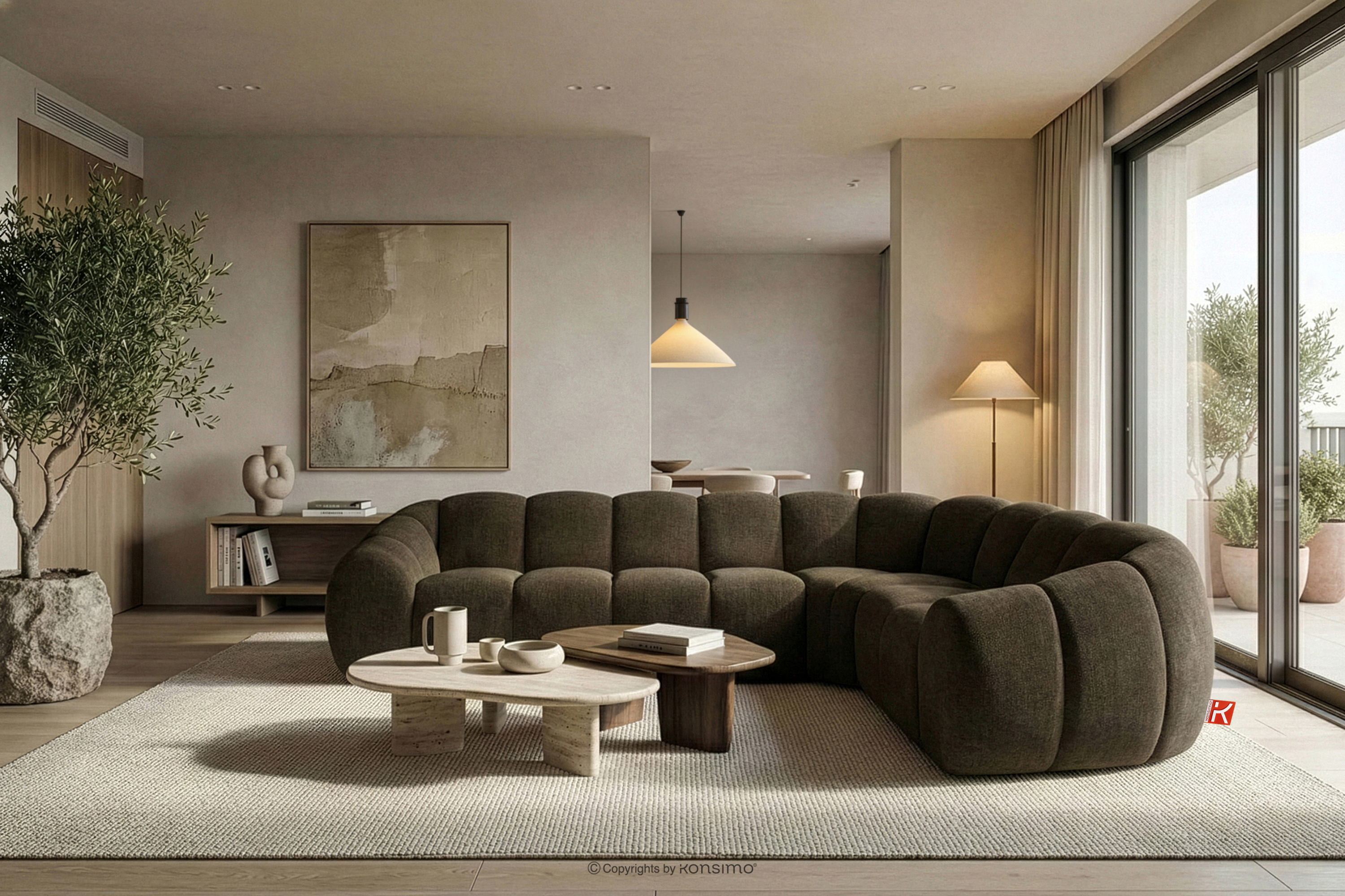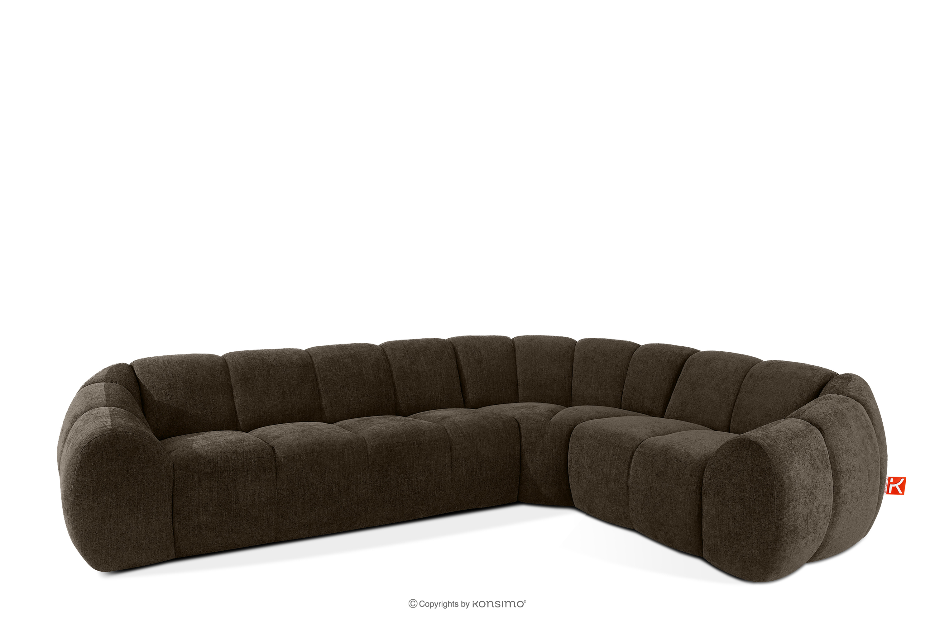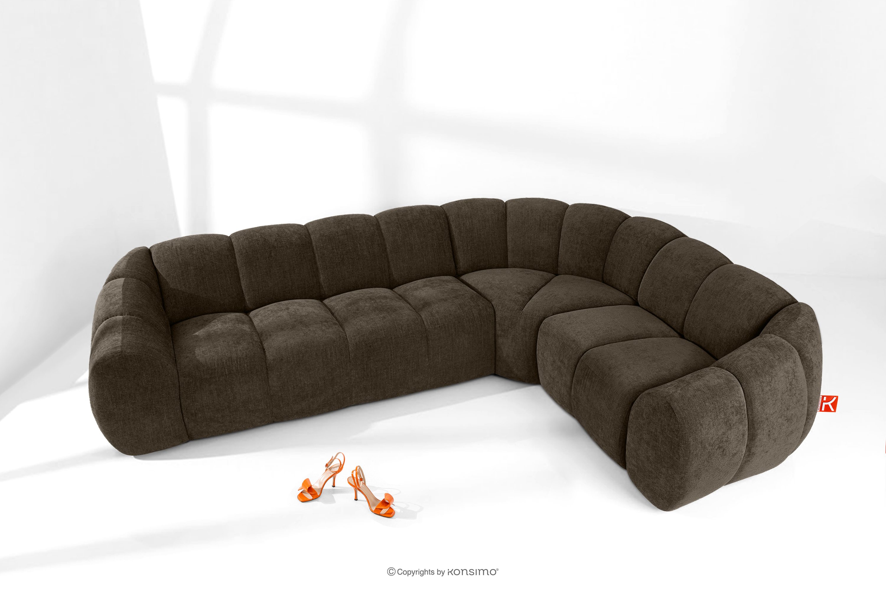 Gesteppte Eckcouch im Retro-Modern-Stil rechts braun verkörpert die Essenz einer modernen Interpretation des Retro-Modern-Stils, in dem weiche, organische Formen auf die kompromisslose Funktionalität zeitgenössischen modularen Designs treffen. Jedes Element dieser Serie wurde mit dem Ziel entworfen, einen harmonischen Raum zu schaffen, der die weichen Linien und den geometrischen Rhythmus zelebriert, die für die Designikonen der 70er Jahre charakteristisch sind, jedoch in einer aufgefrischten, luxuriösen Version.