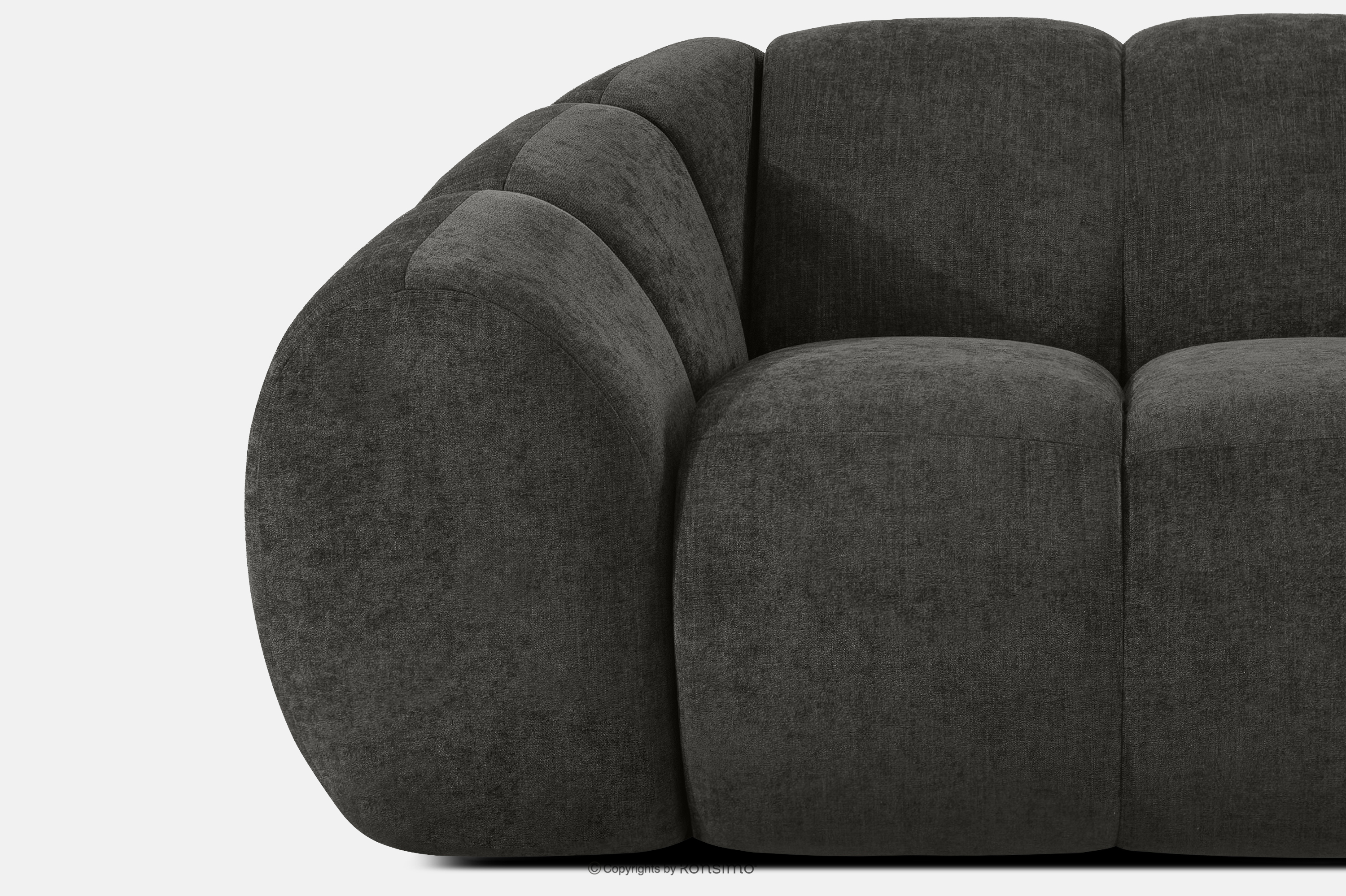 Großes gestepptes modulares Ecksofa im Retro-Modern-Stil rechts graphit verkörpert die Essenz einer modernen Interpretation des Retro-Modern-Stils, in dem weiche, organische Formen auf die kompromisslose Funktionalität zeitgenössischen modularen Designs treffen. Jedes Element dieser Serie wurde mit dem Ziel entworfen, einen harmonischen Raum zu schaffen, der die weichen Linien und den geometrischen Rhythmus zelebriert, die für die Designikonen der 70er Jahre charakteristisch sind, jedoch in einer aufgefrischten, luxuriösen Version.