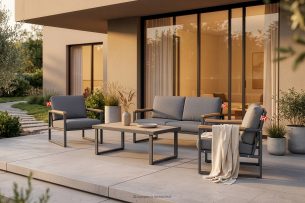 Anthrazitfarbenes Stahl-Gartenset im Industriestil...